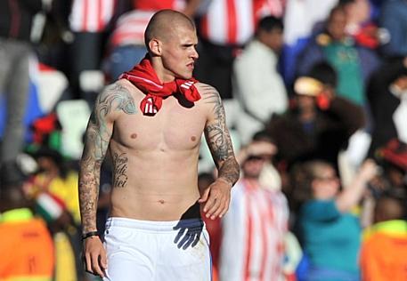 Martin Škrteľ – Slovenský kapitán sa vo svete preslávil vďaka FC Liverpool, v ktorom hrá. Je stopérska dvojička spolu s Aggerom. Vytetované má aj meno svojej priateľky Barbory či známy výrok Juliusa Caesara Veni Vidi Vici.