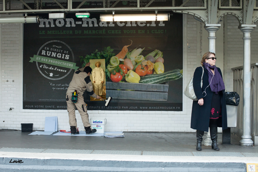 Skvelý nápad dostal výtvarník Etienne Lavie. Rozbehol projekt s názvom „OMG who stole my ads?“ (OMG kto ukradol moje reklamy?), ktorého cieľom je zameniť všadeprítomné nevzhľadné reklamy za vysoko estetické, klasické, umelecké diela.
