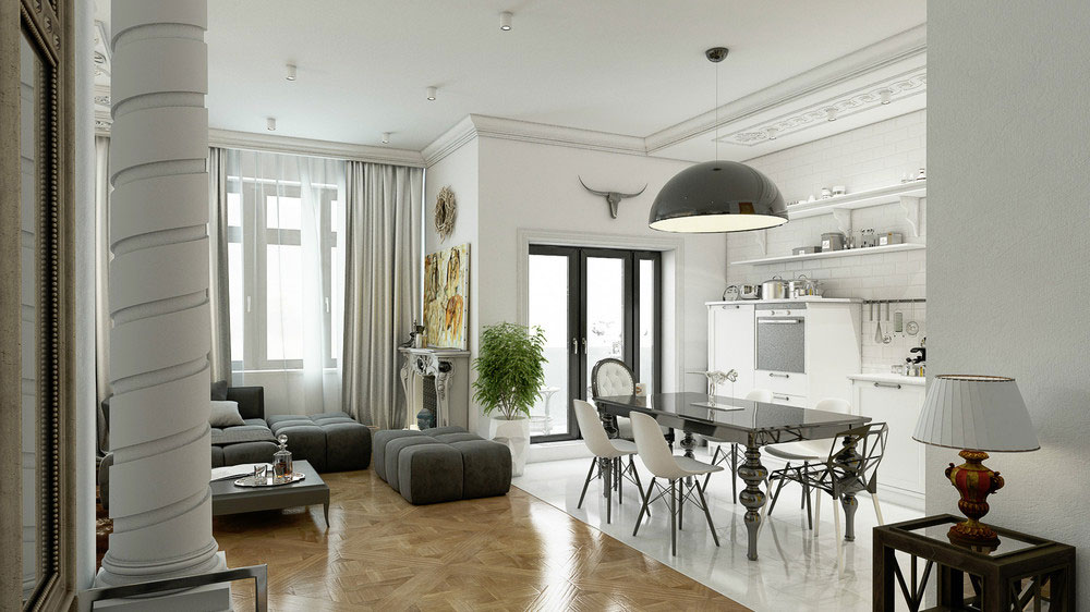 „Unexpected Luxury”, teda neočakávaný luxus je sofistikovaný koncept interiéru, ktorý sa zrodil v hlave Andrewa Kudenka. Pri jeho zariaďovaní vsadil na svetlé farby, ktoré podporili presvetlenie celého bytu. Andrew sa nebál zakomponovať ani výstrednú žltú chladničku či barokové a rokokové prvky. Aj napriek rôznym štýlom nábytku a doplnkov pôsobí interiér kompaktne a čisto. Takto zariadený byt je vhodný pre moderné mestské typy. Pri pohľade na jeho fotografie sa pre mnohých z vás stane snom a inšpiráciou zároveň.