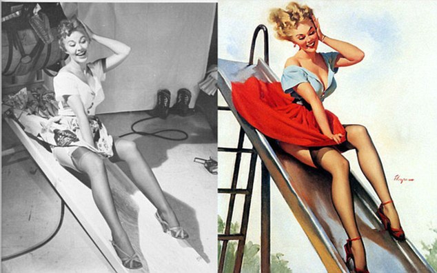 Autorom týchto obrazov z päťdesiatých rokov je Gil Elvgren. Zistilo sa, že jeho diela neboli len výplodom fantázie. Obrazovou predlohou boli fotografie žien, ktorých výzor sa síce zjavne odlišuje od tých z malieb, avšak pózy a výrazy tváre sú totožné. Umelec im zjemnil črty tváre a ubral, či pridal na tých správnych miestach. Môžeme povedať, že šlo o akéhosi predchodcu photoshopu.