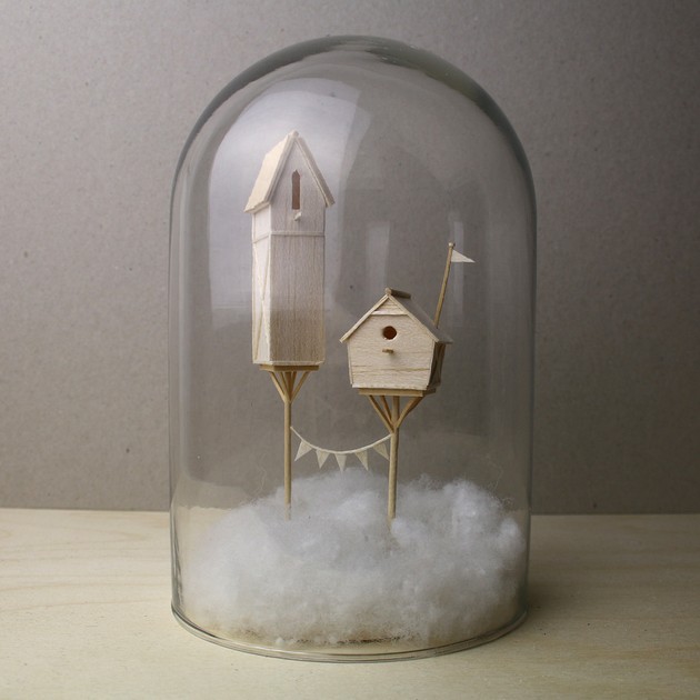 Holandská umelkyňa sa rozhodla nahádzať zopár “drobností” z balzového dreva pod sklenený poklop a spraviť takúto fotosériu. Domčeky, kostolíky, rebríky či iné stavbe v malej mierke sú základom miniatúrnych svetov v jej podaní. Tie však dopĺňajú mnohé ďalšie detaily, tak, aby snové scenérie mohli byť prenesené do zmenšenej podoby. Preto nečudo, že k stavbám pridáva aj mraky, dym či papierové kulisy.