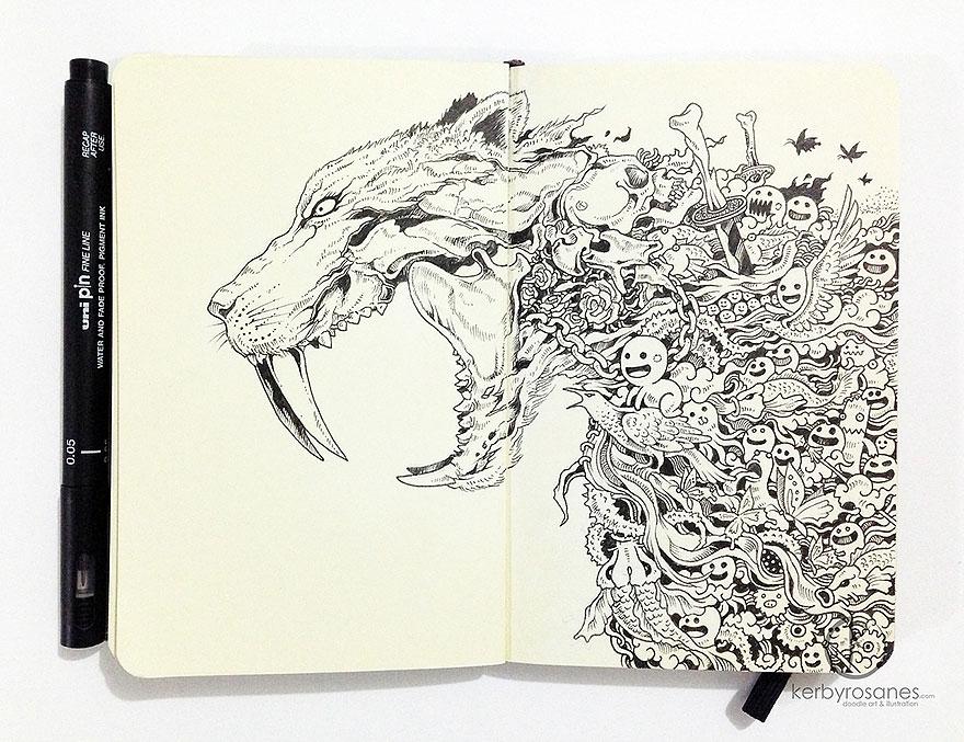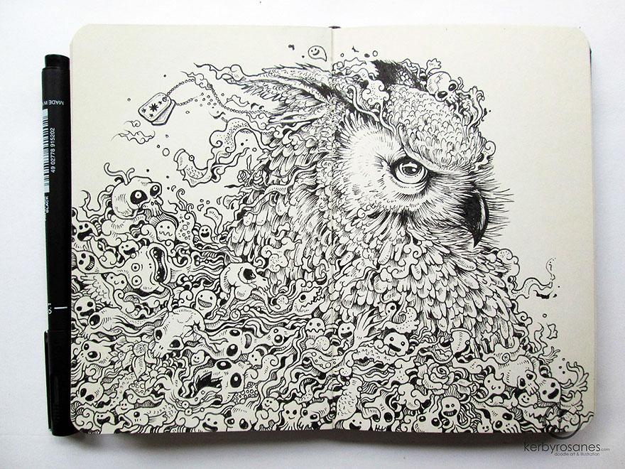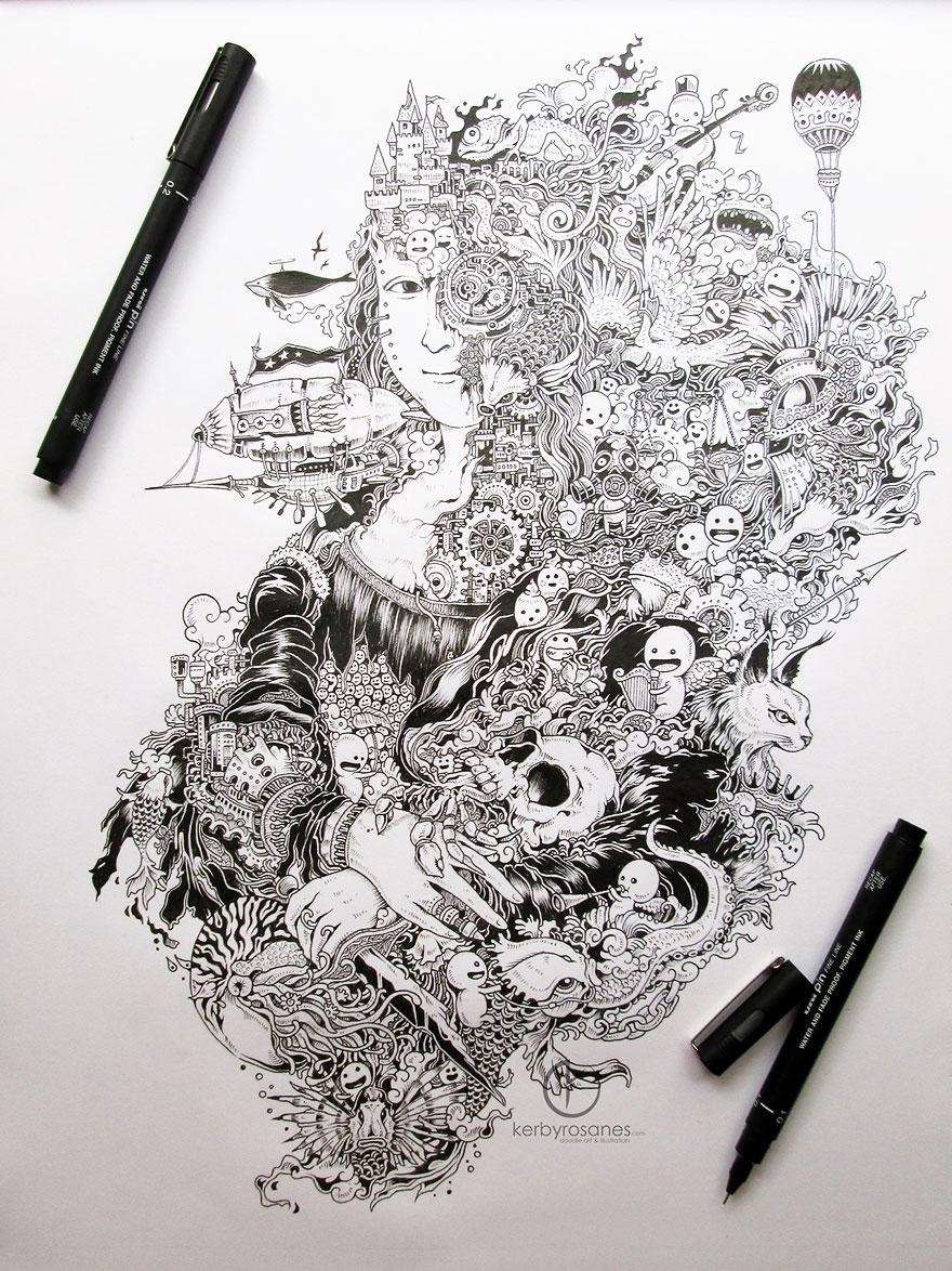 Väčšina z vás si určite v čase voľna alebo nudy v škole či v robote len tak čmára po stranách v zošite či zápisníku. Avšak, filipínsky autor Kerby Rosanes posunul tieto „čmáranice“, ako ich sám nazýva, na trošku vyšší level.