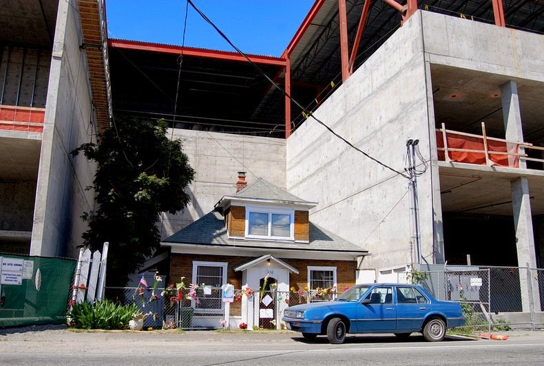Na rohu Northwes 46th Street a 15th Avenue, v Ballarde (Seatle) sa nachádza malý domček, natlačený medzi potravinami a fitness centrom, obklopený vysokými betónovými múrmi. Tento viac ako 100 ročný dom ešte donedávna patril Edith Macefield, starej tvrdohlavej žene, ktorá jednoducho odmietla predať svoj dom za 1 milión amerických dolárov aby tak umožnila cestu komerčnému komplexu. "Ja sa nechcem sťahovať. Nepotrebujem peniaze. Peniaze neznamenajú nič." Vďaka tomuto činu sa z pani Macefield stala miestna hrdinka, symbolom sily a vytrvalosti. Nepodvolila za žiadnu cenu a zubami nechtami sa držala svojich zásad aj napriek tomu, že jej 108 ročný domček obklopila veľká betónová džungľa. Bol to jej domov a ona bola skalopevne presvedčená, že v dome, kde umrela jej matka chce dožiť aj ona sama.