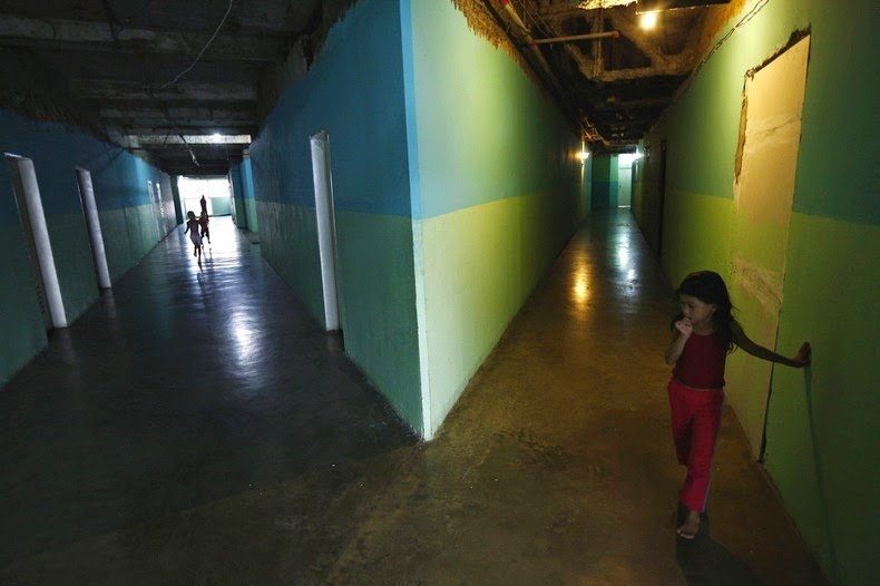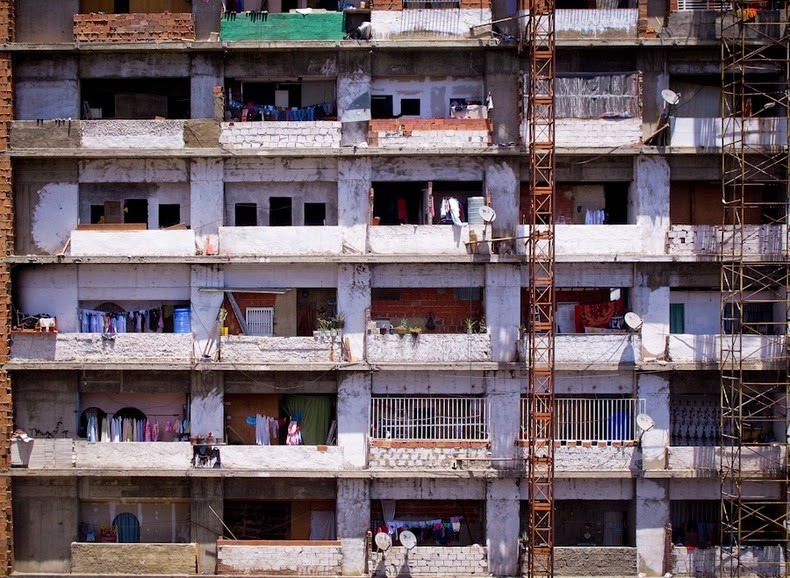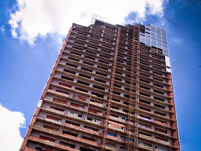 Bývanie v tejto nedostavanej budove je skutočne nebezpečné, pretože v niektorých častiach chýbajú okná, či zábradlie na balkónoch.