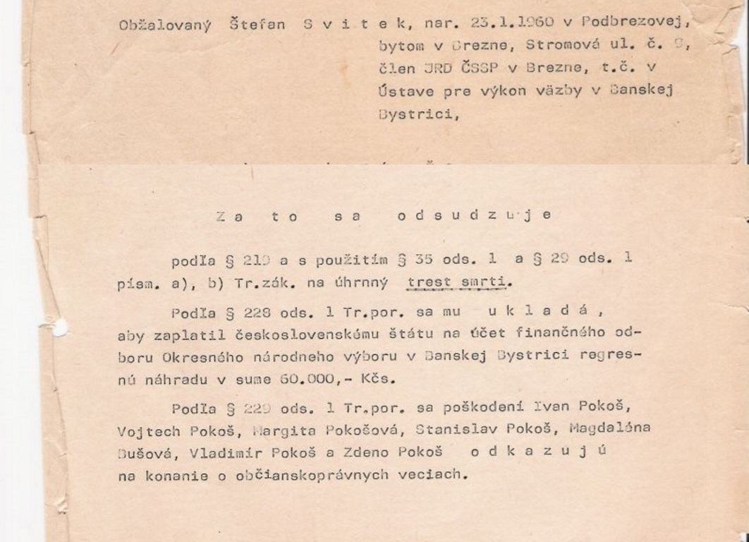 Keďže bolo vyliečenie Sviteka nemožné, Krajský súd v Banskej Bystrici ho odsúdil na trest smrti. 8. júna1989 bol popravený v Bratislave a stal sa tak posledným odsúdeným na trest smrti v Československu.