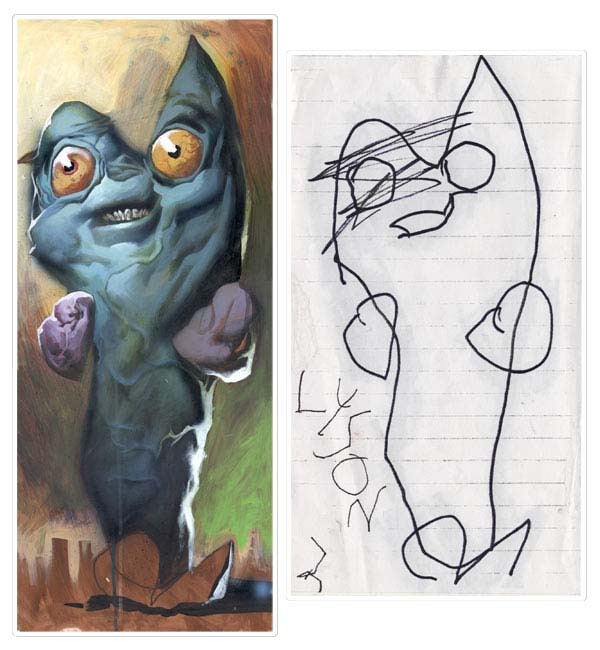 Keďže denne maľoval 3D pre Marvel a DC comics, nebol dôvod, aby nedokázal oživiť aj detské machule. Odvtedy zbiera Devries detské kresby príšerok a pretvára ich do hororovej podoby.