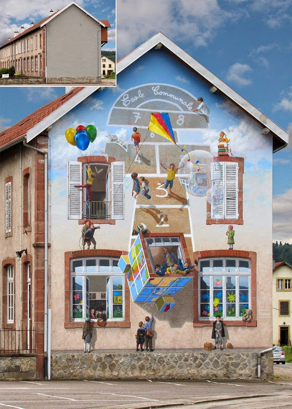 Tentokrát sa pozrieme do Francúzska, kde tím muralistov (maliarov nástenných obrazov) pod vedením francúzskeho umelca Patricka Commecyho premenil nudné a ošuntelé fasády budov na živé scény plné života. Ich hyperrealistické maľby okien, balkónov, dlažby či ľudí vyvolávajú na prvý pohľad dojem, že naozaj ide o skutočnosť.