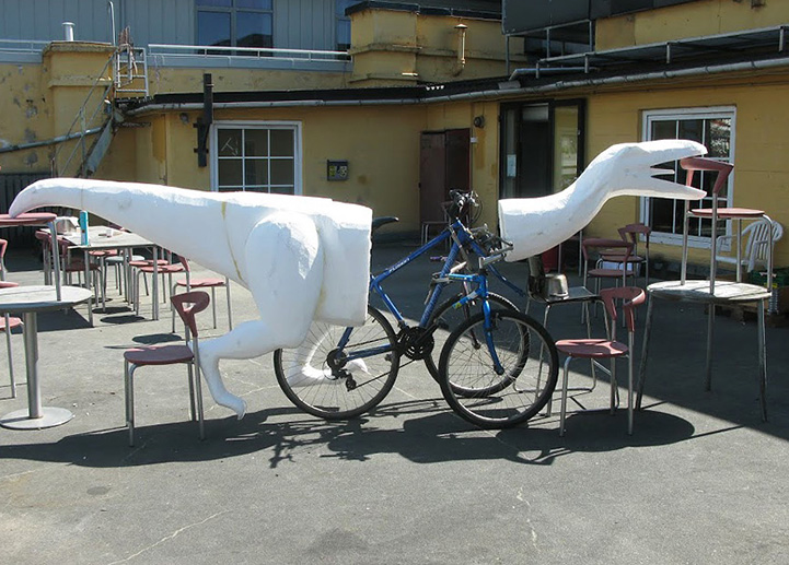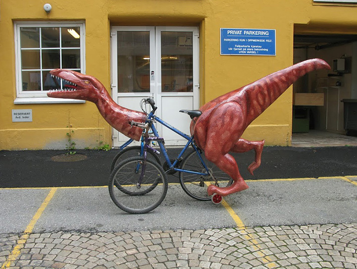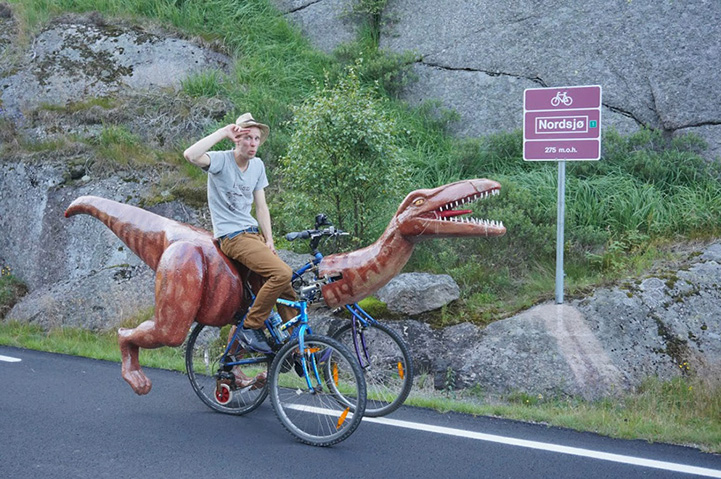 Je naozaj ťažké nesmiať sa pri pohľade na fotografie Markusa Moestue, ktorý jazdí na chrbte obrovského dinosaura ulicami Nórska. Jeho vlastnoručne postavený bicykel však v sebe nesie hlboké posolstvo.