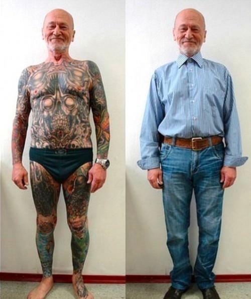 Jedným z argumentov, prečo si nedávať tetovanie, býva to, že ak raz budeme starí, stane sa z toho jedna nepekne vyzerajúca machuľa. Nasledujúce fotografie dôchodcov z kategórie 60+ toto tvrdenie vyvracajú. Tetovania, za ktorými sa pravdepodobne skrývajú rôzne ľudské príbehy, dodávajú dedkom a babkám mladistvý vzhľad i nezameniteľný svojský štýl.