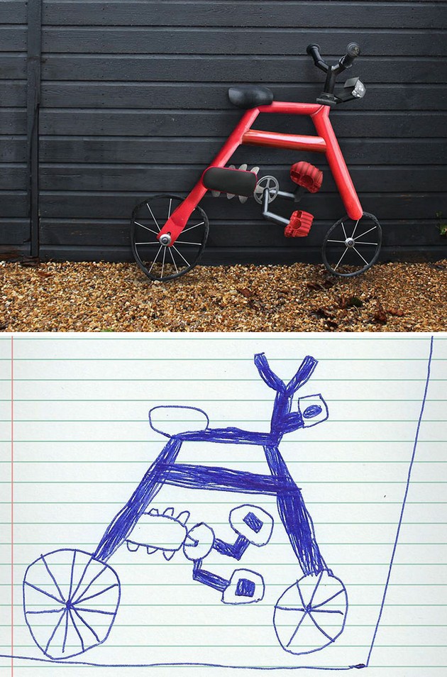 V nasledujúcej sérii fotiek vám rodič kresledniachtivého 6-ročného drobca predvedie, ako by jeho kresby pôsobili v skutočnosti. Našťastie, toto je len fikcia. Niektoré obrázky by totiž v realite spôsobili šialené výbuchy smiechu - veď sa pozrite sami: