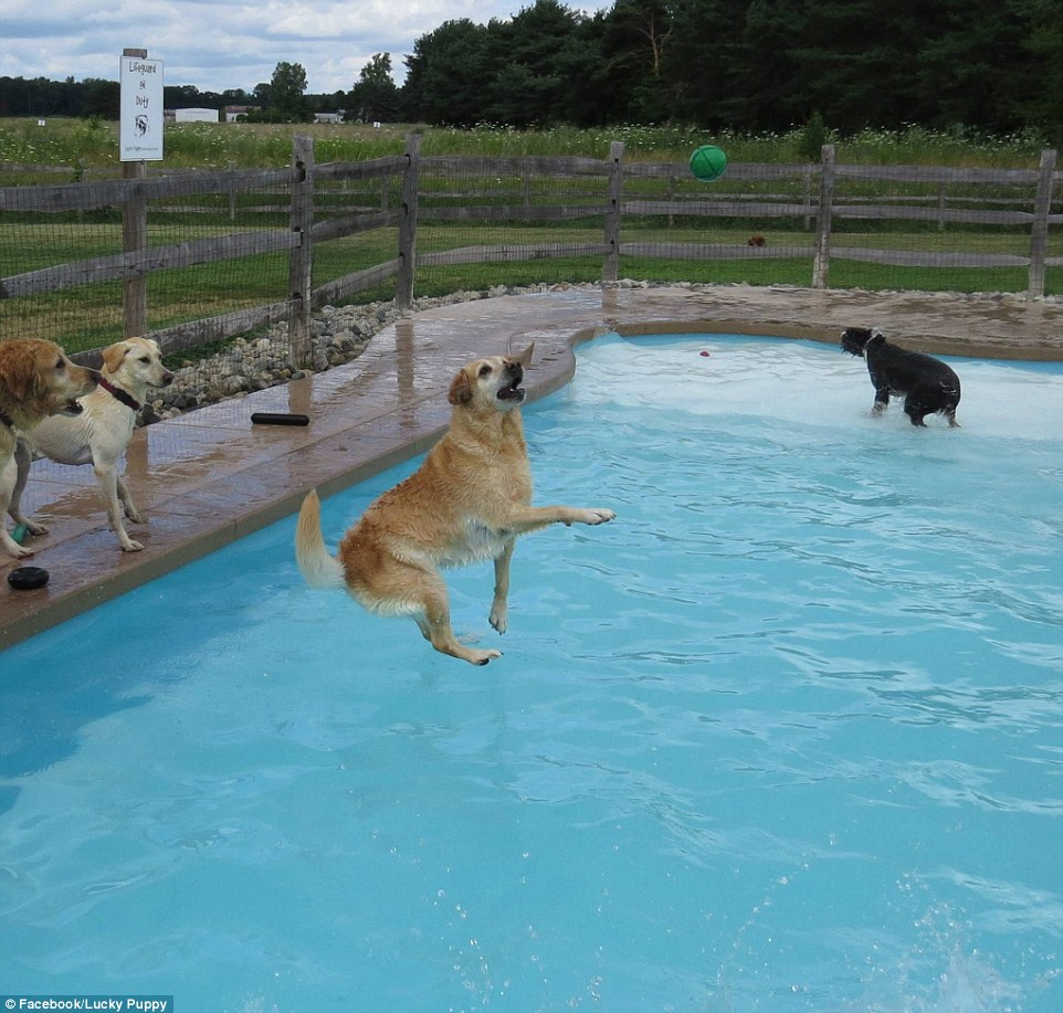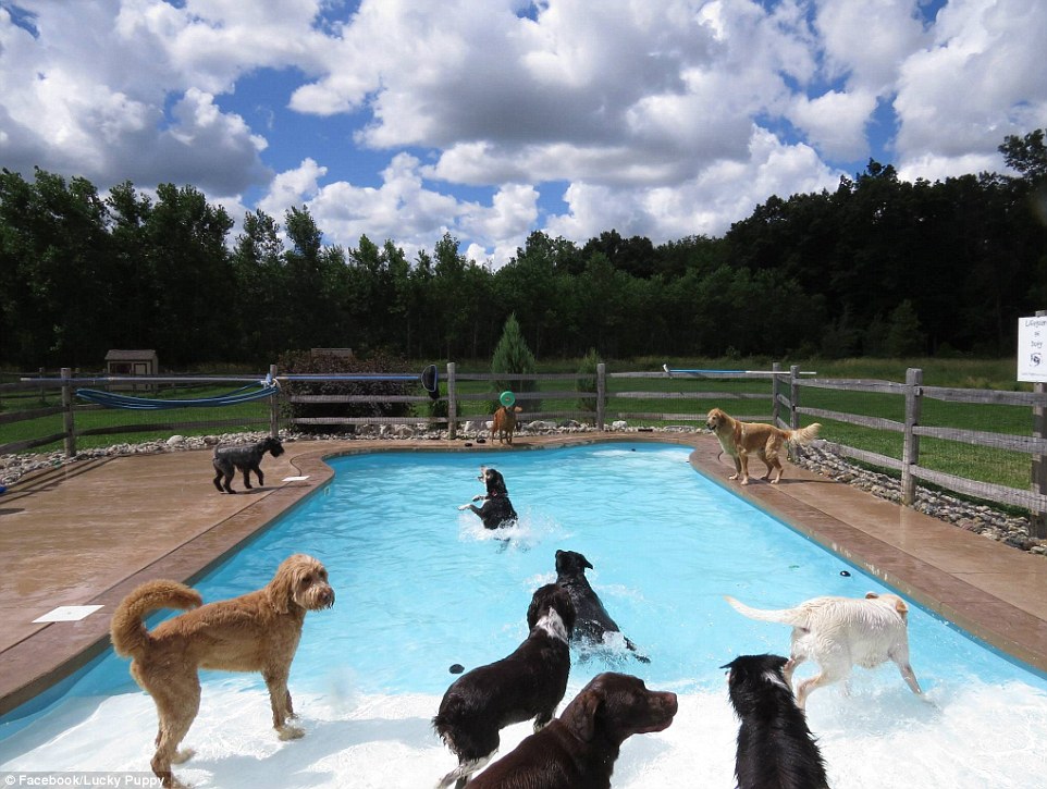 Lucky Puppy, psia škôlka v Michigane, poskytuje služby pre tú najnáročnejšiu klientelu. Bazénová party je súčasťou pobytu v luxusnej škôlke, kde sa psíkovia hrajú a plávajú v bazéne, ktorý má tvar kosti, pričom vyzerajú naozaj šťastne.