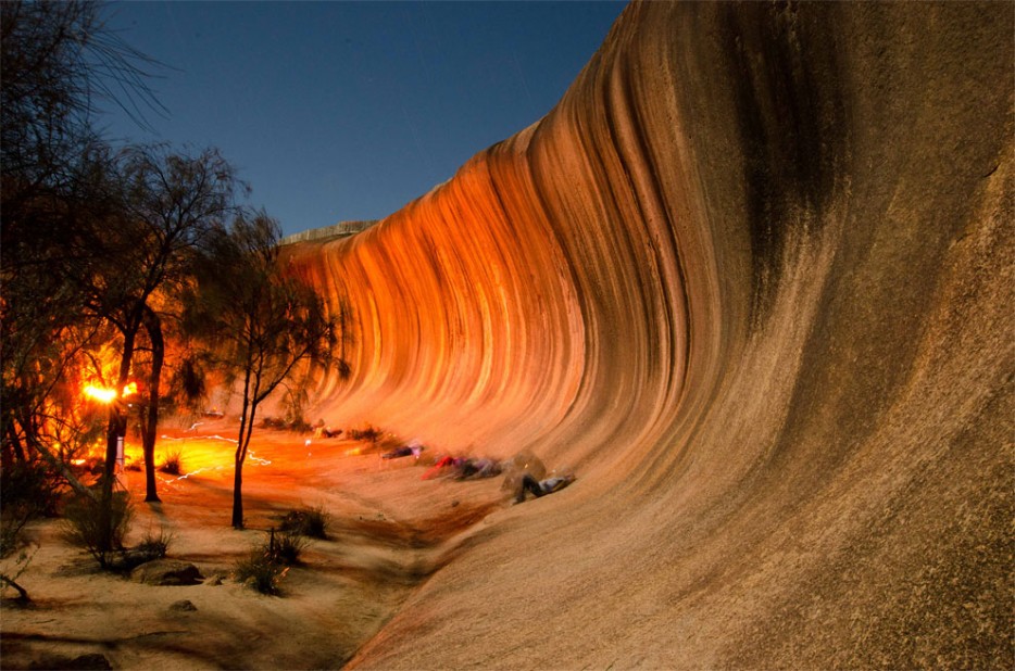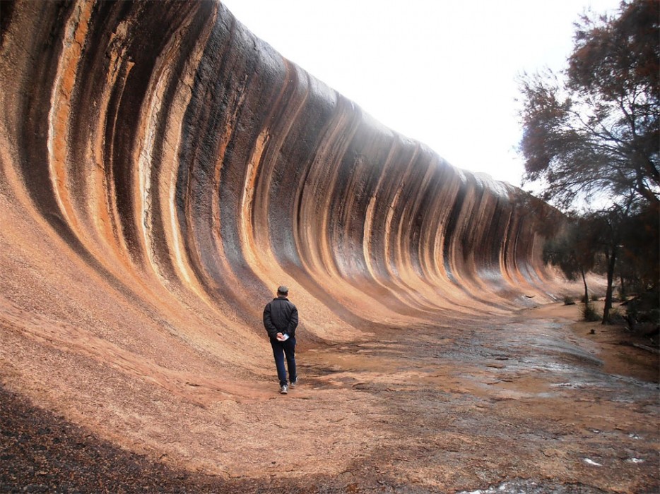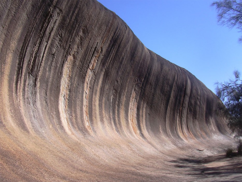 Wave rock, teda Kamennú vlnu môžete nájsť v Západnej Austrálii. Vyzerá ako valiaca sa vlna z oceána, akurát, že zastala v čase a priestore. Vlna zo skaly je 14 metrov vysoká a 110 metrov dlhá a je súčasťou pahorku Hyden rock, ktorý sa nachádza v prírodnej rezerváci Hyden Wildlife Park.