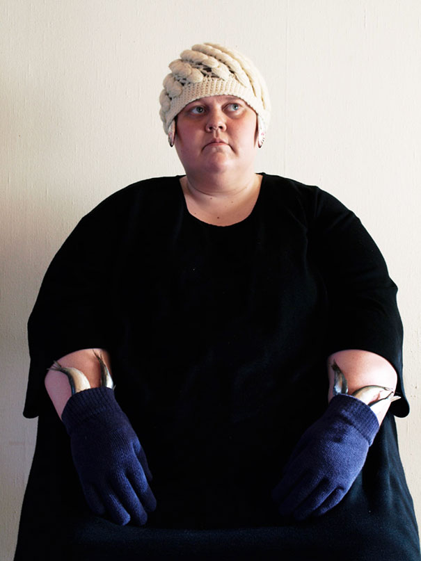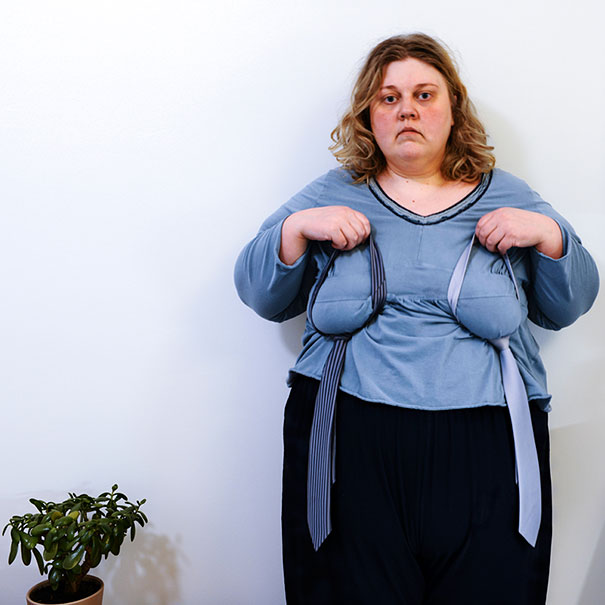 Svoje nedostatky sa na autoportrétch totiž nesnaží zakryť, ale čo najviac ich zviditeľniť. Vytvorila tak sériu kontroverzných až trochu surrealistických fotografií, na ktorých je hlavnou postavou ona v zvláštnom spojení s niektorými predmetmi. Fotografie môžu vyvolávať zmiešané pocity.