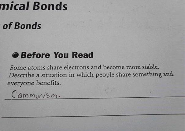 V týchto prípadoch si študenti zvolili inú alternatívu. Odpovedali na otázku v podstate správne, ale nie presne to, čo si predstavoval učiteľ. A tak svojimi odpoveďami najskôr pobavili svojho pedagóga a teraz bavia celý svet.