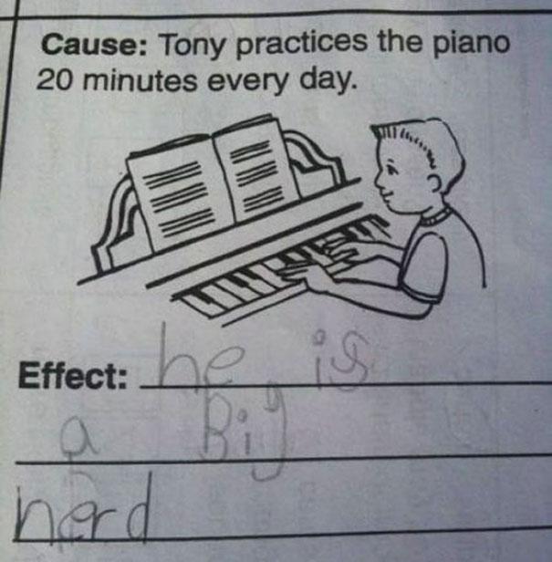 Tony hrá na klavíri 20 minút každý deň. (Efekt: Je to veľký blb)