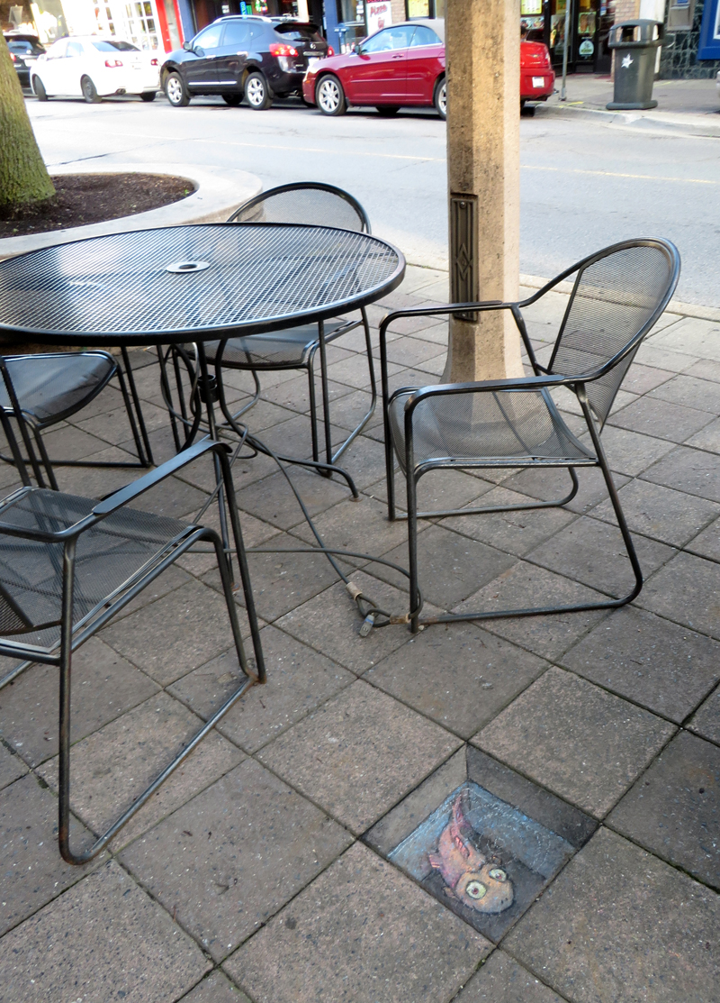 Ilustrátor a umelec David Zinn z Michiganu chodí po uliciach s farebnými kriedami a kreslí veselé zvieratká. Robí to už od roku 2001. Jeho zvieratká vyzerajú, akoby naozaj žili na mieste, kam ich umelec nakreslil.