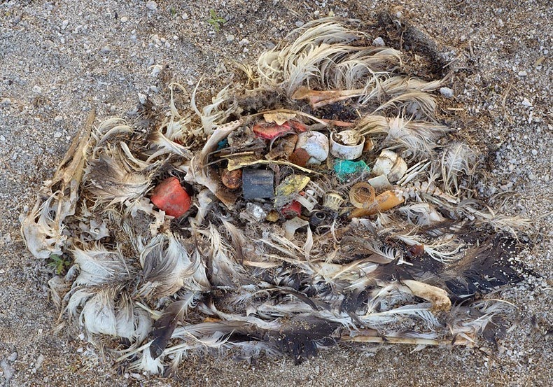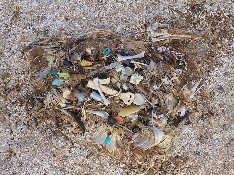 Po dobu troch rokov, fotograf zo Seatlu a malá skupinka kameramanov, natáčali albatrosy žijúce na ostrove Midway Atoll v Pacifiku, viac ako 2 400 míľ od Aljašky. Vtáky, ktoré sa bežne živia chobotnicami a ďalšími zvieratami plávajúcimi pod povrchom vody, namiesto svojej potravy prehltli kúsky plávajúceho plastu. Ten si totiž často zamieňajú s jedlom. Následne sa vtáky vracajú na ostrov, kde týmto plastom kŕmia svoje mláďatá. Na tomto mieste sa ročne narodí asi 500 000 albatrosích mláďat, no približne 200 000 z nich umrie v dôsledku dehydratácie či hladovania. Plasty, ktoré mláďatá zjedia v mnohých prípadoch porania alebo prepichnú ich žalúdok a vytvárajú zranenia, ktoré ohrozujú ich životy a väčšinou končia smrťou. Inokedy zomrú na udusenie, dehydratáciu či hladovanie, pretože plast zanecháva v žalúdku veľmi malý priestor na vodu a jedlo.