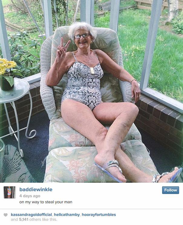Takmer každý deň zdieľa obrázky so svojimi nasledovníkmi na sociálnych sieťach, ktorých má ich viac než dosť - na Twitteri je ich viac ako 200 000 a na Instagrame viac ako 30 000. Pokiaľ by ste takéto správanie videli na 16 ročnom puberťákovi, poviete si, že sa v ňom búria hormóny a je šťastný z toho, že práve objavil nové gesto, ktoré používa na každej fotke, alebo že jednoducho využíva technológie tak trošku v zvýšenej miere. Pokiaľ má však tento teenager 86 rokov, môže sa to zdať, pri najmenšom, veľmi vtipné. Čerešničkou na torte je Baddiene tvrdenie, že je „na ceste ukradnúť vám vášho muža“. Dávajte si preto pozor, aby odolal čaru tejto dámy, ktorá minimálne svojim srdcom ostane „Forever young“.