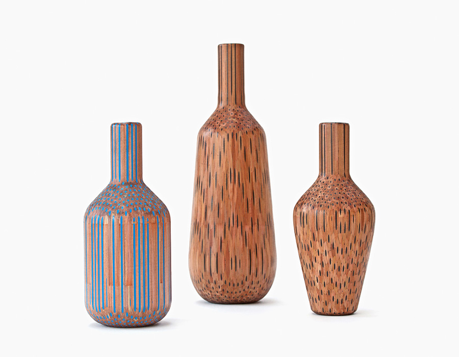 „Tak dlho, ako si len spomínam, som mal jeden alebo dva poháre plné drevených ceruziek na mojom stole v štúdiu - niektoré nové, niektoré napoly minuté, niektoré obyčajné a iné farebné. Uvedomil som si, ako krásne a zaujímavé sú aj ako objekty. Využívanie ich len pre ilustráciu mojich myšlienok sa mi zdalo, ako keby som nevyužíval ich plný potenciál." Vázy predstavujú limitovanú edíciu a prichádzajú v troch rôznych tvaroch s farebnými možnosťami. „Modrá farba bola vybraná, aby tvorila kontrast s prírodnou farbou cédrového dreva."
