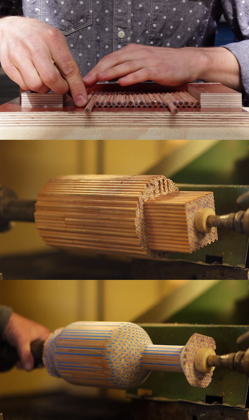 Zlepením stoviek ceruziek sa vytvorí blok, s ktorým sa následne zaobchádza ako s kusom dreva a opracúva sa na sústruhu do tvaru vázy. Každý tvar ukazuje vnútornú štruktúru iným spôsobom a vytvára nové vzory. Vázy sú na vonkajšej strane potiahnuté lakom a včelím voskom a na vnútornej epoxidovou živicou, aby boli vodotesné. Faber-Castell, nespracované drevené ceruzky, boli pre projekt vybrané pre ich presnosť a jednotnosť, ktorá je pri tvorbe váz rozhodujúca.
