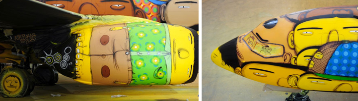 Stačil im len jediný týždeň, aby pomocou 1 200 plechoviek sprejov dokončili zbierku portrétov na obrovskom boeingu, zatiaľ čo krídla z bezpečnostných dôvodov ponechali šedé. Os Gêmeos vytvorili obrovské lietajúce umelecké dielo, ktoré zachytáva život brazílčanov a nesie ho k oblakom. Desiatky portrétov reprezentujú ich kultúru a odrážajú typický rukopis bratov - predĺžené tváre, výstredné oblečenie, farebná pokožka a animované výrazy zdobia celý trup lietadla od chvosta po nos. Projekt bol dokončený v spolupráci s Gol/9ine, ktorý bude boeing používať aj po skončení World Cup. Futbaloví fanúšikovia reprezentujúci Brazíliu môžu teda naplno fandiť svojmu tímu, ktorý je už minimálne v tomto smer určitým víťazom.