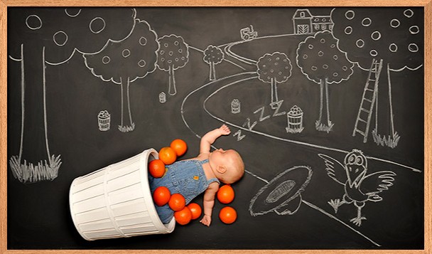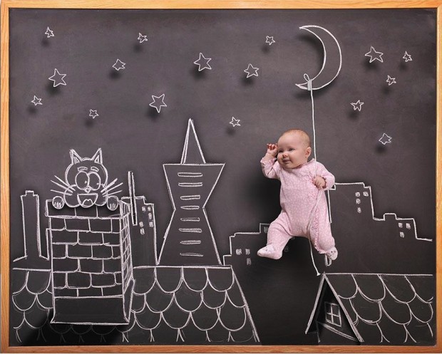 Anna Eftimie je fotografka a matka dvoch deti zo San Jose z Kalifornie. Vytvorila sériu fotografií pod názvom Tabuľové dobrodružstvá, v hlavných úlohách s jej deťmi. Počas toho, ako jej deti zaspia na tabuli, pomocou kriedy a fantázie vytvorí okolo nich rozprávkový svet a nakoniec to odfotografuje.