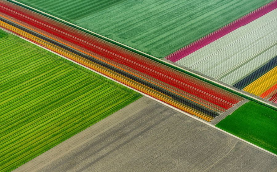 Prírodná fotografka Ríma Simone Sbaraglia prišla do Holandska, aby zdokumentovala miliardy nádherných tulipánov, ktorými je krajina preslávená. Prenajala si lietadlo, ktoré ju vynieslo vysoko nad nekonečné polia, aby sa z kvetov stali magicky podmanivé abstrakcie plné živých farieb a vzorov. Z takej výšky vyzerajú rady farebných kvetov skôr ako odvážne ťahy štetca cez plátno.