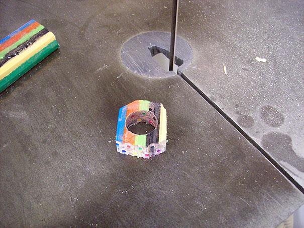 Peter Brown, víkendový rezbár z Kalifornie, vytvára malé a jednoduché, no pri tom hravé a krásne prstienky z pasteliek. Balíček farebných pasteliek zaleje lepidlom a následne vyreže hruh o veľkosti prsta. Potom už treba len trošku zručnosti a krásny dúhový prstienok je na svete. Pred tým, ako sa pokúsil o svoj prvý výtvor by sa mu ani len nesnívalo, akú popularitu si jeho jedinečné prstienky získajú. Teraz mu teda neostáva nič iné, ako vykúpiť všetky papiernictva naokolo a dať sa do práce.