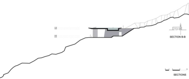 Nekonečný bazén tvorí strechu rezidencie a poskytuje nádherný panoramatický výhľad na Egejské more. Súčasne poskytuje tepelnú izoláciu a chráni obyvateľov pred slnečným žiarením. Dom bude mať po dokončení tri spálne, oddelený kuchynský kút a vonkajšiu obývaciu izbu. Cieľom projektu bolo integrovať dom do miestnej krajiny, aby tvoril jej súčasť. Väčšina stavebných materiálov bola nájdená v bezprostrednej blízkosti a použitá tak, aby dom doslova „zmizol“ v krajine. Materiály majú veľmi nízky dopad na životné prostredie a zároveň sú izolačným materiálom domu rozprestierajúceho sa na takmer 200m2.
