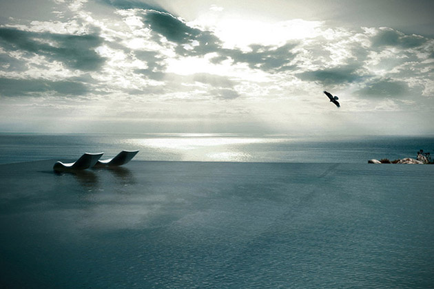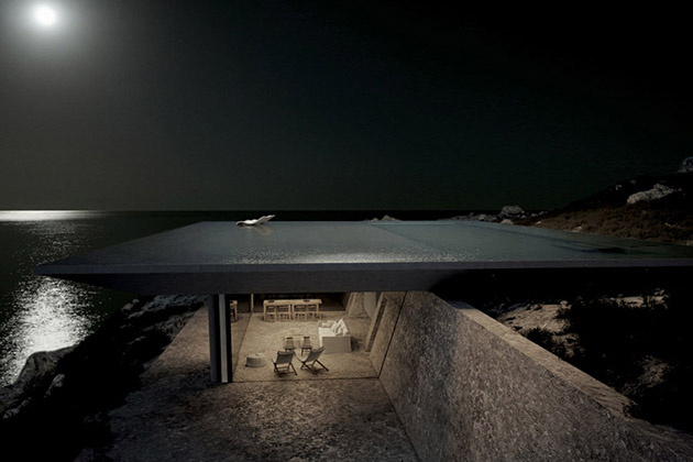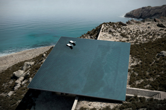 Veľkolepá rezidencia s obrovským bazénom rozprestierajúcim sa priamo na jej streche je naozaj jedinečná svojho druhu. Navrhnutá bola talentovaným tímom Kios Architecture, ktorý ho zasadil vysoko do strmého svahu krásneho gréckeho ostrova Tinos. Ten je známy nedotknutou architektúrou, malebnými dedinkami roztrúsenými po kopcoch a krásnymi scenériami.