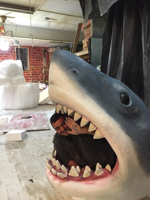 Otec dáva spať svoje bábätko do čeľustí žraloka.