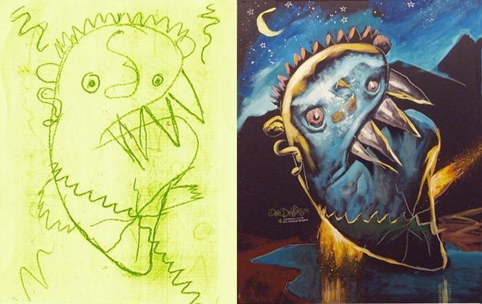 Keďže denne maľoval 3D pre Marvel a DC comics, nebol dôvod, aby nedokázal oživiť aj detské machule. Odvtedy zbiera Devries detské kresby príšerok a pretvára ich do hororovej podoby.