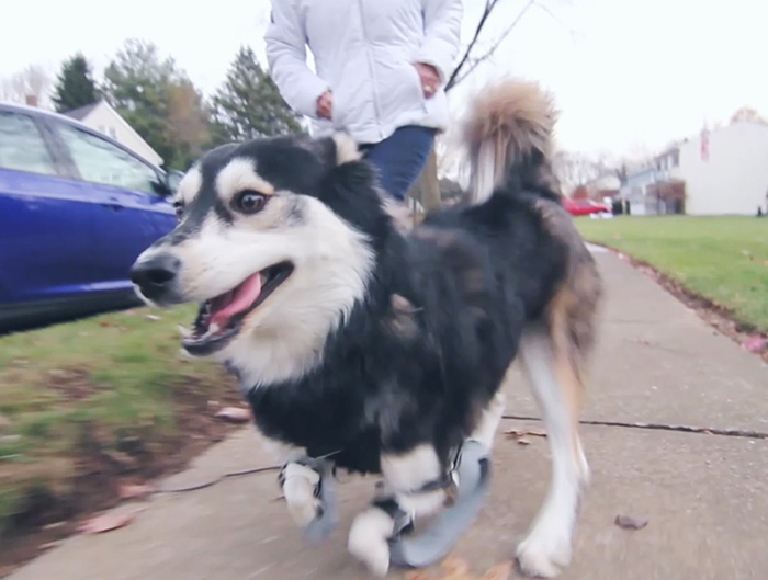 Napriek jeho hendikepu sa jeho páni naňho nevykašľali, ale rozhodli sa mu pomôcť. Majiteľka Derbyho pracuje v 3D Systémoch a s kolegami mu vymysleli protézy na labky. Odvtedy môže Derby behať a užívať si život ako každý iný psík.