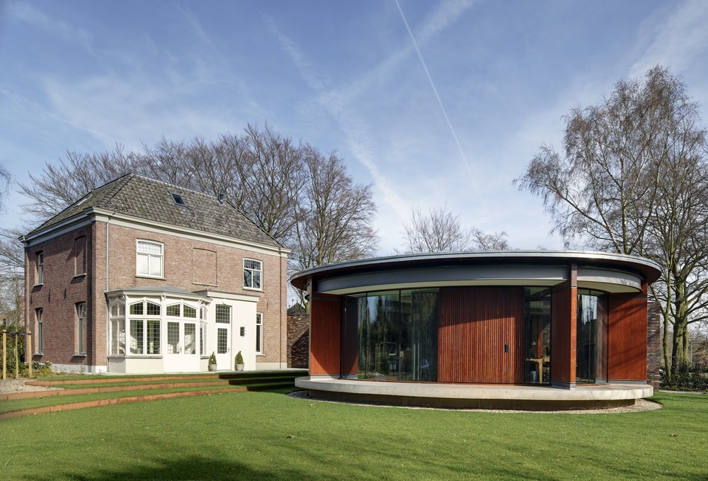 Pracoviská, kde prebiehajú všetky rokovania, sa nachádzajú v okrúhlom pavilóne uprostred záhrady. Keďže pavilón je celý presklený, ponúka krásny výhľad na vilu a do záhrady, zatiaľ čo veľký previs poskytuje dostatok tieňa počas slnečných dní. Tento pavilón je doslova srdcom spoločnosti. Tehlová chodba ho spája so starou vilou a vďaka svojmu tvaru poskytuje potrebný pokoj a súkromie na tomto frekventovanom mieste.