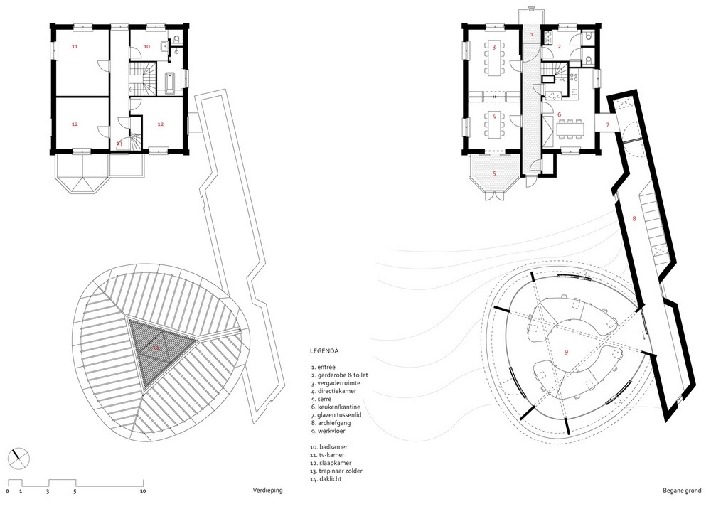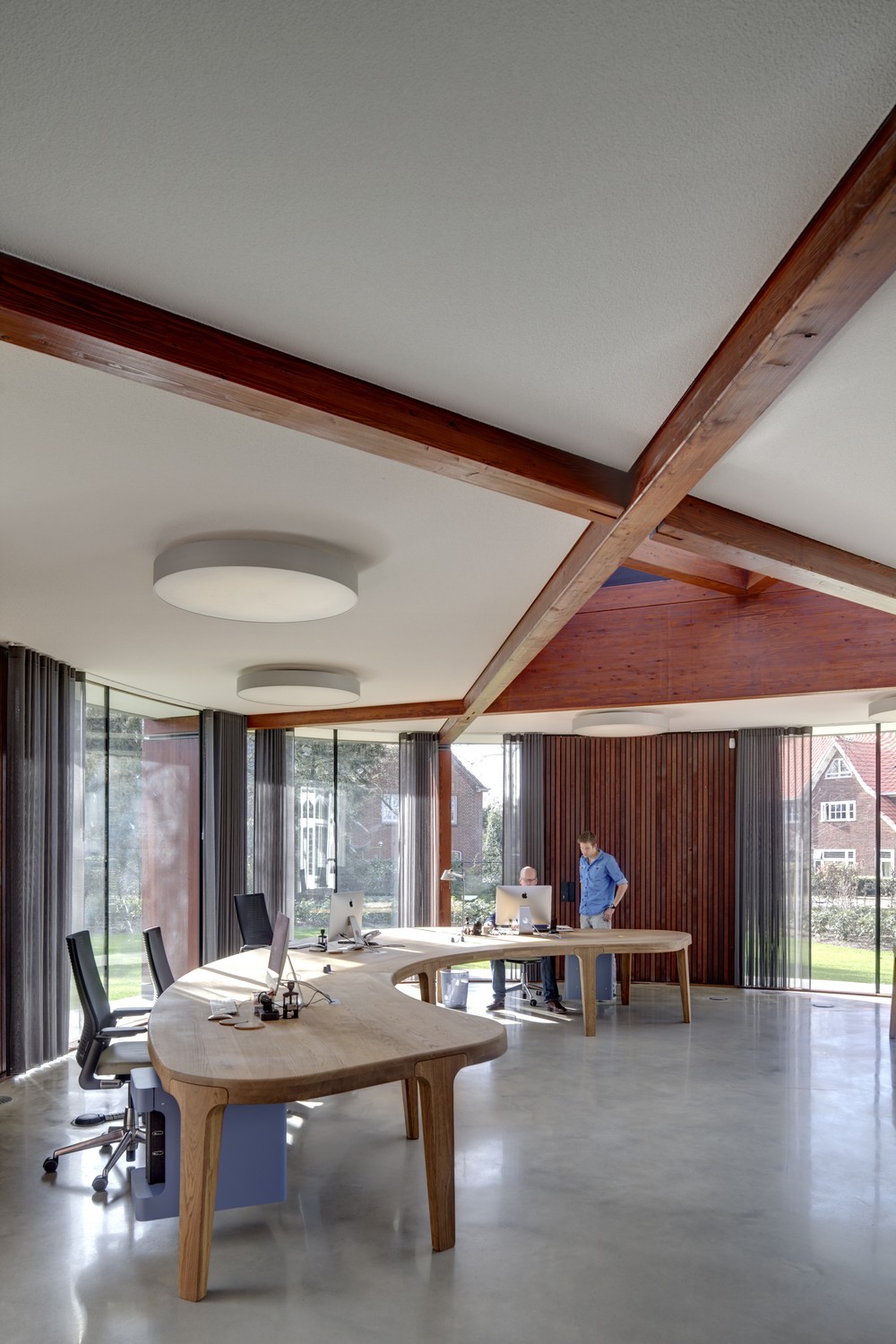 Na prvom poschodí vily, zrekonštruovanej HILBERINKBOSCH architektmi, sa nachádza konferenčná miestnosť, kancelárie a jedáleň, zatiaľ čo druhé poschodie ponúka dostatok priestoru pre pobyt zahraničných hostí, s ktorými Sonder rieši medzinárodné obchody. Nové schodisko poskytuje interiéru požadovanú majestátnosť a eleganciu.