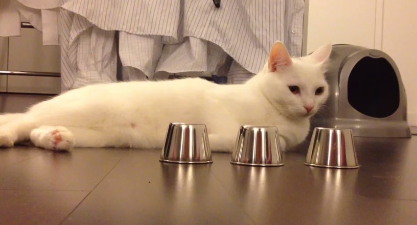 Hádaj, pod ktorým pohárom je guľôčka. Dokážeš prekonať túto mačku a uhádnuť všetky miešania?