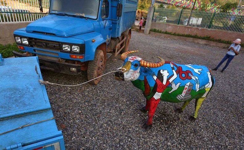 V meste Pu'er v čínskom kraji Jiangcheng sa v máji koná nezvyčajná súťaž. Táto súťaž má medzinárodný charakter a spočíva v tom, že súťažiaci z celého sveta čo najoriginálnejšie pomaľujú telo svojho býka.