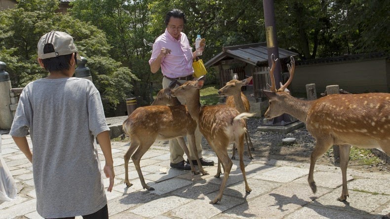 V japonskom meste Nara sa voľne pohybuje okolo 1200 chránených srncov.