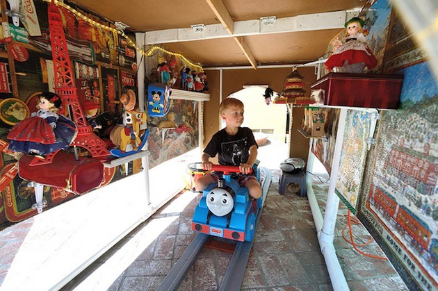 Jeho vnúčatá už trochu podrástli, kým však boli malé, radosť im okrem zábavy z jazdy spôsobovali aj dekorácie na spôsob Disneyho postavičiek - tak napríklad Hľadá sa Nemo je jazda v modeli ponorky, ktorá vás prevedie cez “oceán” z modrej plachty. Nechýba ani rozprávkový hrad či malý kolotoč s rýchlosťou 12 míľ za hodinu.