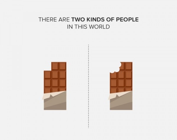 Veľmi trefne to vystihli výtvarníci na Zomato, ktorí ukázali, že v skutočnosti sú na svete len dva typy ľudí. Buď chováte doma mačku, alebo psa. Buď pijete kávu, alebo čaj. Vo fastfoode si dáte hamburger, alebo cheeseburger. Vidíte aké je to jednoduché? Tak aký typ človeka ste vy?